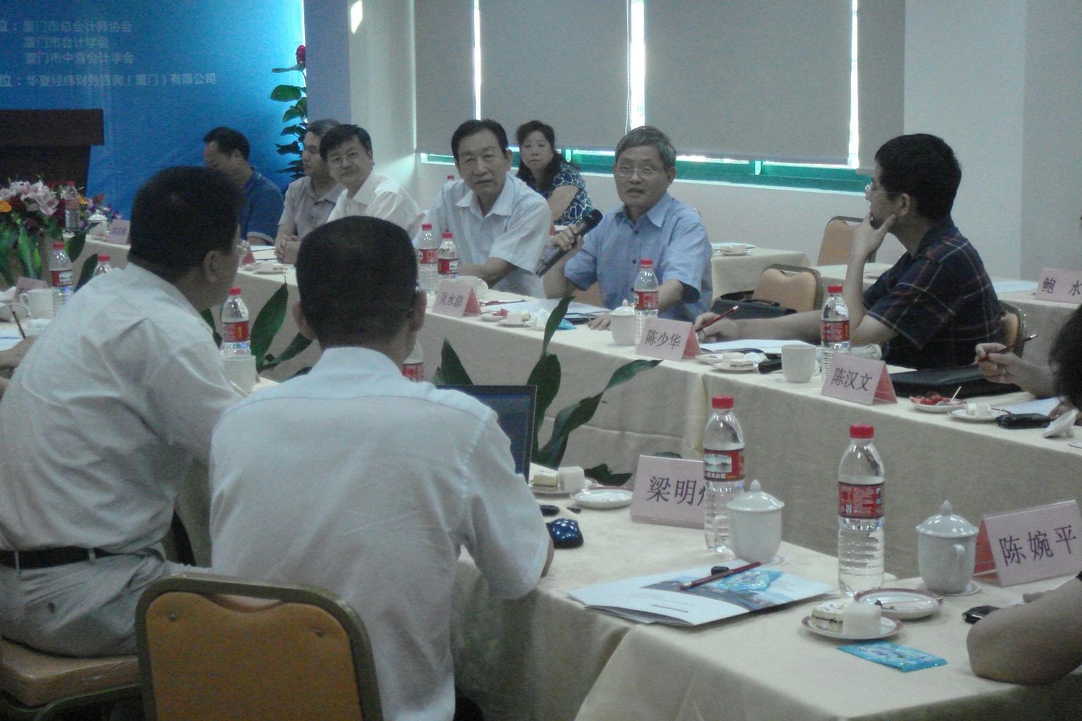 2011年8月18日下午,由廈門市總會計(jì)師協(xié)會、廈門市會計(jì)學(xué)會和廈門市中直會計(jì)學(xué)會聯(lián)合主辦、華夏經(jīng)緯財(cái)務(wù)咨詢(廈門)有限公司協(xié)辦的題為“當(dāng)前經(jīng)濟(jì)形勢與企業(yè)財(cái)務(wù)管理”的主題論壇在廈門富興大廈B幢8樓華夏經(jīng)緯會議室成功舉辦。參加論壇的有廈門市財(cái)政局領(lǐng)導(dǎo),廈門市總會計(jì)師協(xié)會、廈門市會計(jì)學(xué)會、廈門市中直會計(jì)學(xué)會常務(wù)理事,廈門大學(xué)吳水澎、陳漢文、陳少華、傅元略等會計(jì)學(xué)資深教授、博導(dǎo),美國管理會計(jì)師協(xié)會IMA中國代表李蔚,以及部分企業(yè)總會計(jì)師、財(cái)務(wù)總監(jiān)等。
