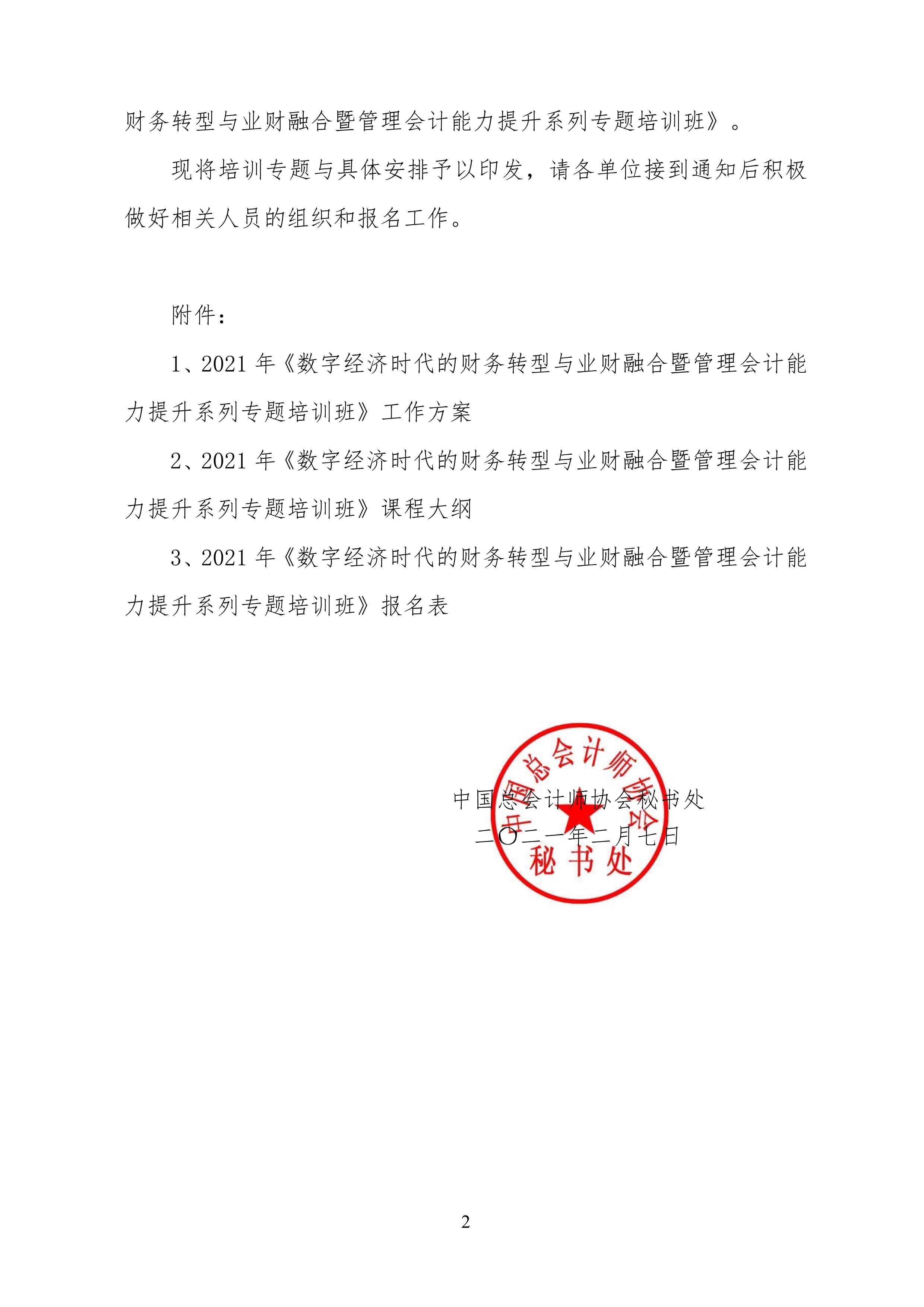 附件:中總秘[2021] 11號 關于2021年舉辦《數(shù)字經(jīng)濟時代的財務轉(zhuǎn)型與業(yè)財融合暨管理會計能力提升系列專題培訓班》的通知./upload/edit/file/20210220/20210220163220_17825.pdf